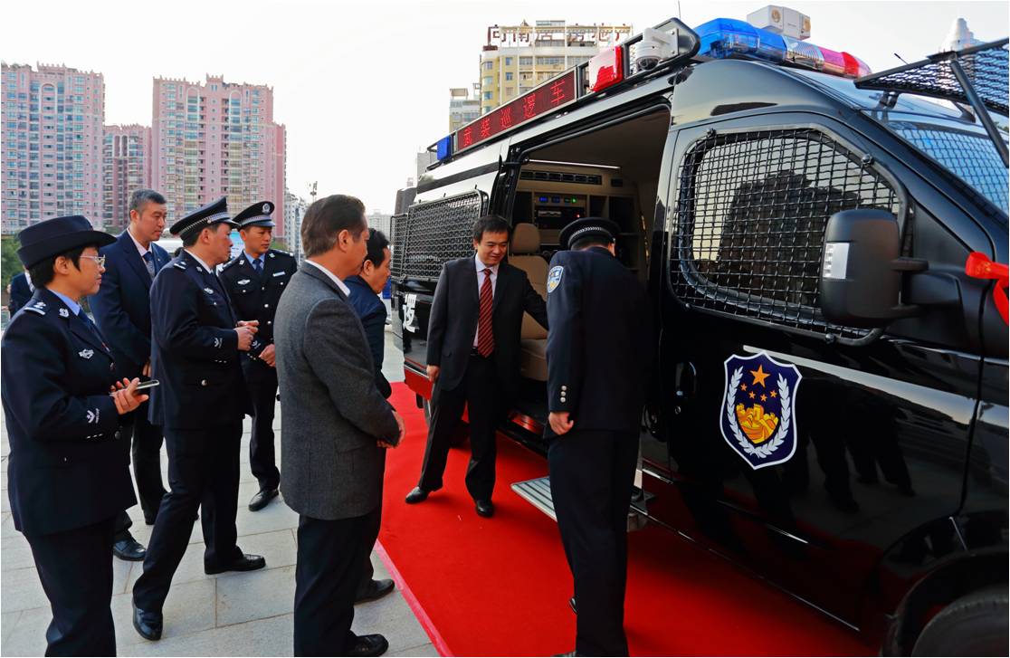 自治區(qū)公安廳和自治區(qū)財政廳相關(guān)領(lǐng)導(dǎo)共同見證了反恐武裝巡邏車的鑰匙交付過程。